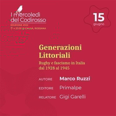 Generazioni Littoriali, di Marco Ruzzi, indaga i rapporti fra sport e storia attraverso l'analisi di profili biografici di giocatori che presero parte alla guerra e alla Resistenza. Relatore della serata Gigi Garelli, direttore dell'Istituto Storico della Resistenza di Cuneo.