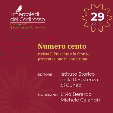 La rassegna si conclude con la presentazione in anteprima del Numero Cento della rivista Il Presente e la Storia. Michele Calandri, direttore della rivista, e Livio Berardo analizzeranno l'evoluzione e la storia dello storico semestrale, riflettendo sul valore "politico" delle grafiche e delle copertine susseguitesi dal 1972 ad oggi.