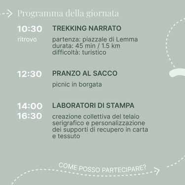 ritrovo al piazzale di Lemma alle 10:30. Durata 45 min, difficoltà minima