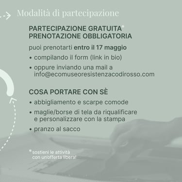 Partecipazione gratuita, prenotazione obbligatoria entro il 17 maggio.