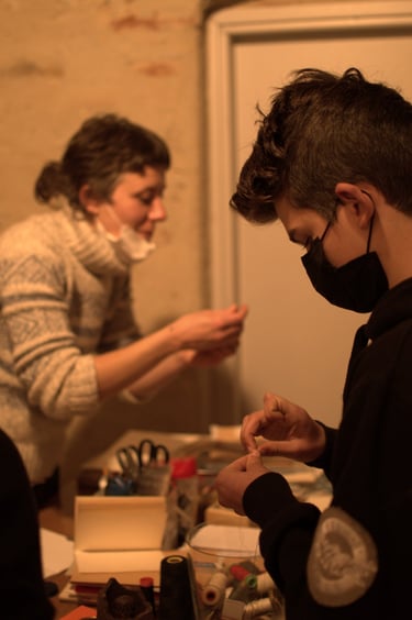 13 partecipanti, dai 16 ai 65 anni, accomunati dalla curiosità e dalla voglia di sperimentare tecniche nuove. A coordinare le attività di stampa serigrafia e legatoria Arianna e Ginevra, designer del Politecnico di Torino.