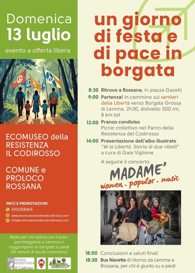 18:30 Disponibile navetta da Lemma a Rossana per chi è giunto a piedi al mattimo.